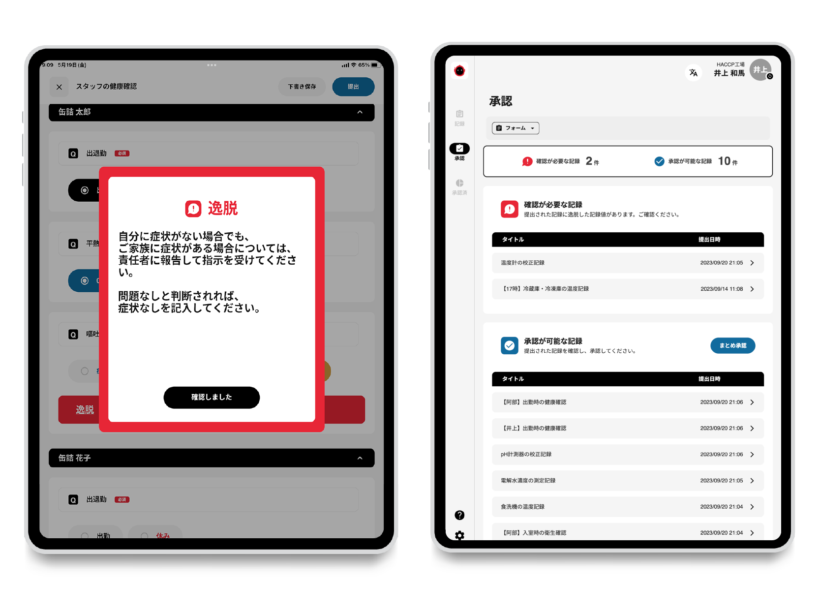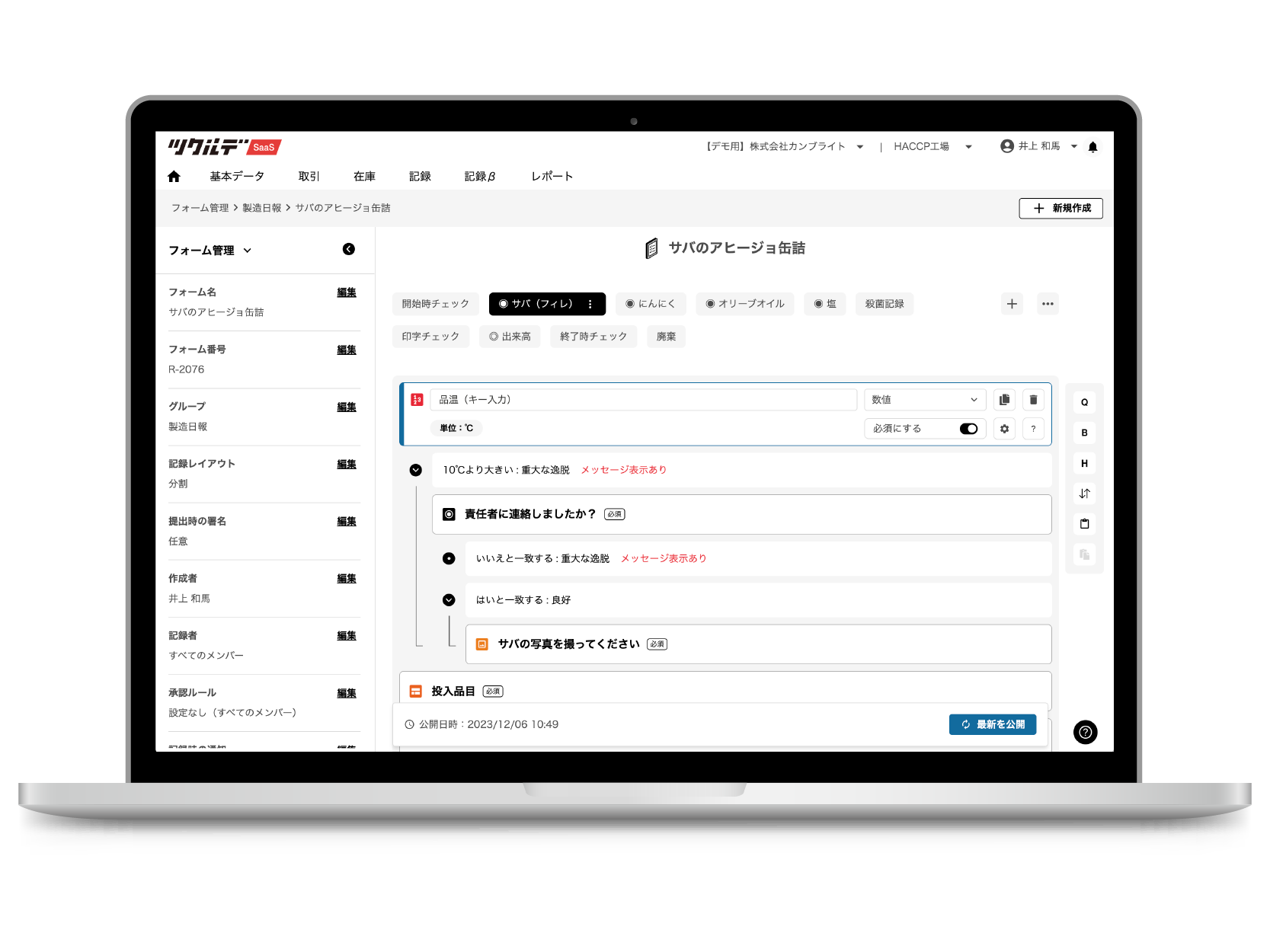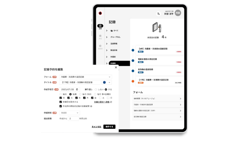 ブロックを組み立てるように見やすい画面で衛生記録や製造日報の帳票作成が可能。