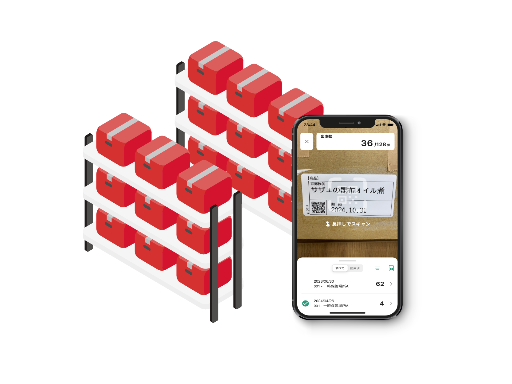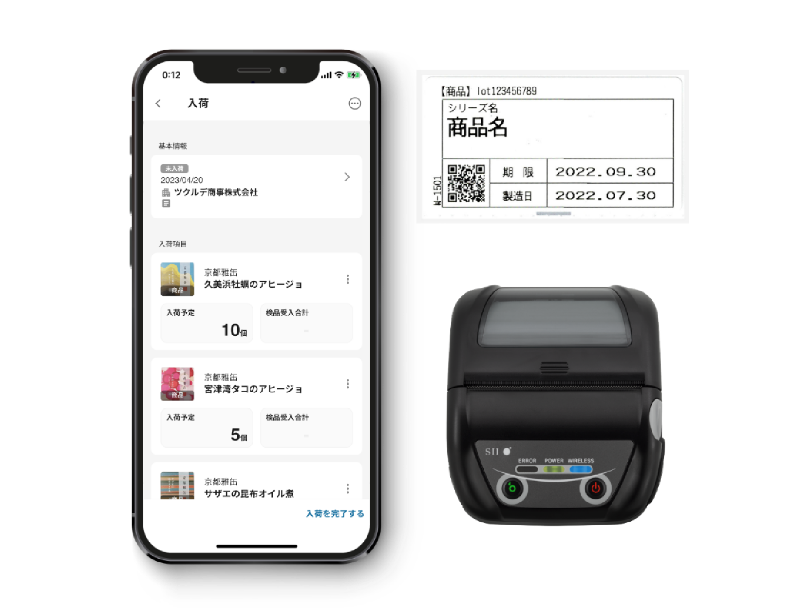期限管理により先入先出の入出荷が可能。アプリとプリンターで操作も簡単。