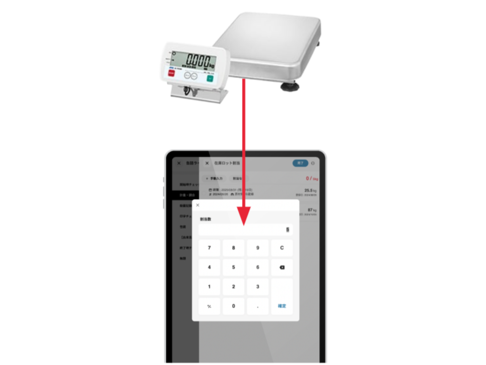 帳票にレシピ情報が反映。材料の使用量の自動計算や、バッチ単位で製造数を指示して計量・調合が可能。
